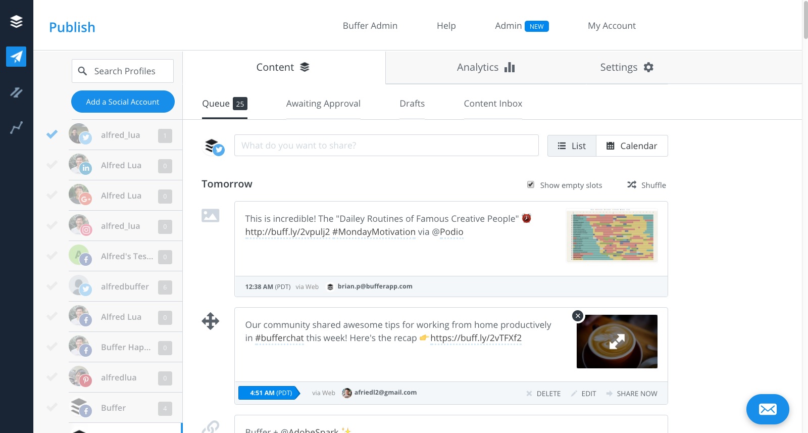 Buffer集成了近30个其他的解决方案,包括Zapier,automate.io,和integromat。所以可能性也是无穷无尽的。