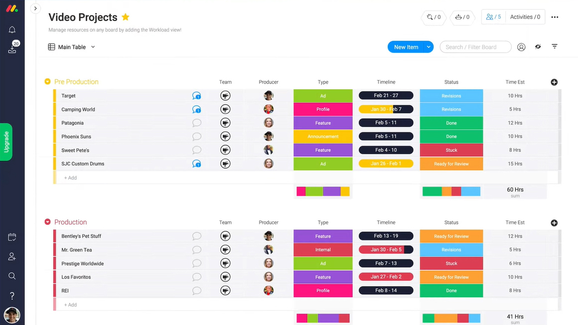 Monday.com的用户喜欢它能让自己的工作井井有条、并且很容易地将工作委托给他人。通知系统非常出色,能确保团队成员不会错过任何更改信息。批评的点包括自动化漏洞和缺乏全面的入职流程。