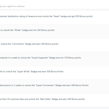 通过任务,您可以为您的客服设置与您的业务目标一致的绩效目标。这些任务将激励有益于品牌的客服活动,将客服技能提升到新的水平。但还远不止于此!通过完成任务,您的代理可以获得奖励积分和独特徽章,这些徽章将显示在他们的个人资料上,展示他们的成就。此外,完成任务将提高他们赢得月度奖杯和在代理人排行榜上达到高名次的机会。