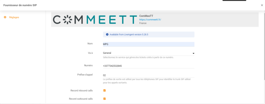 如何在LiveAgent中实现ComMeeTT VoIP号码?